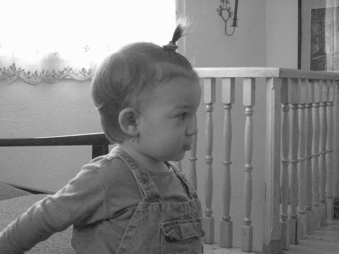 Mióta megszületett, azt várom, hogy minden reggel fésüljem, fonjam, copfba kössem, csattokkal díszítsem selymes babahaját. De hát Saroltom szinte haj nélkül született, persze én nem akartam észrevenni, hogy csak pihék vannak a fejecskéjén… Ahogy visszanézem a régi képeket, most látom, hogy tényleg nem volt haja, legalábbis nem sok. Másfél évesen elértünk oda, hogy egyáltalán össze lehet fogni a haját, de mihelyt észreveszi tépi is ki a hajgumit belőle. Majd kéri hogy tegyük vissza:)