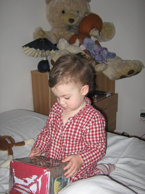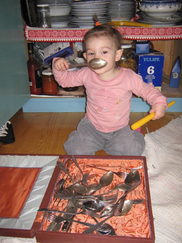 Este sem kereste Apát, gondolom felfogta, hogy máshol vagyunk, nem otthon, és Apa nem jött velünk. Persze elalvás előtt felsorolta az összes szeretett személy nevét, de ennyi volt. Orsiéknál egész nap pakolt, játszott, bárkivel szívesen elvolt, de csak a nőnemű személyekkel(mostanában a férfiaktól nagyon tart, csak tisztes távolságból mosolyog rájuk, de jaj nekik, ha közelítenek! a hosszú kitartó udvarlás azért meghozza az eredményt…:)