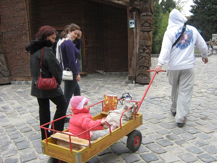 Ilyen kis szekérrel közlekedtünk, Miki húzhatta, de rá nem nézhetett…