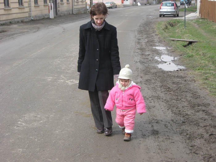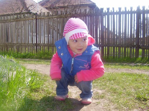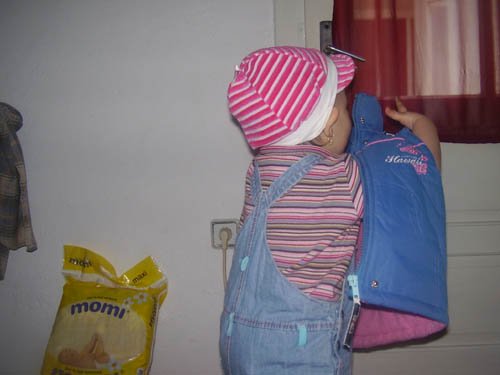 … kicsit felemásra sikeredett, hiszen Sarolt a sok szabadban töltött időnek, és (valószínűleg) az új gumicsizmájának köszönhetően kissé felfázott. Már péntek délelőttől figyeltük, hogy sokat nyafog, és fogja a pelenkáját, de arra gondoltunk, hogy másfajta márkájút vettünk és talán nem szereti a bőre. De amikor szombaton visítva pisilt szegénykém, már tudtam, mi a gond… elégszer estem/esek át én is felfázáson, nem csoda, hogy Ő is ilyen lett. De túl korán… A gyerekorvos megerősítette a gyanúmat, hogy felfázásról van szó, de szerencsére ötnapos antibiotikumos kúrával helyrejött. Amúgy nagyon utálom az antibiotikumos kezeléseket, de most nagyon megijedtem, hiába, hogy nem volt nagyon komoly a betegség, de könnyen vissza lehet esni, és állandósulhat ez a probléma. Ezentúl sokkal jobban kell vigyázzunk, még ápr. közepén is vastag cipő, zokni, stb.