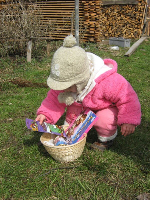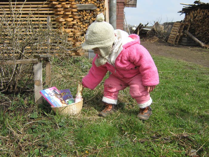 Vasárnap már jól volt, és nem maradt ki semmi a hagyományos húsvéti szokásaink közül, volt ételszentelés, határkerülős menet fogadása, nyuszi jött a ribizlibokrok alá:), volt húsvéti ünnepi ebéd, hétfői locsolófogadás…