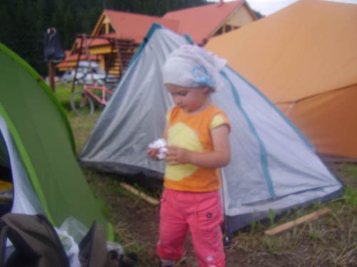 Egyféle életmódváltás zajlik nálunk, ami elég spontán jött, habár régóta ott lóg a levegőben, és -mint egy ideje minden- Sarolt miatt vált időszerűvé. Semmi különös, csak mindig tervezzük, hogy majd többet kirándulunk, többet leszünk a természetben, de valahogy elborítanak nap mint nap a teendők, a millió elintéznivaló, és lassan elszállnak az évek. Nem mintha egy tévé előtt ülő-chipset evő család lennénk, de tény, hogy ránk fér a mozgás a friss levegőn és még inkább az élmények. Ezért EKE-tagok lettünk! Egyből a közepébe ugrottunk a dolgoknak-mint általában-előbb tagok lettünk, és utának kezdtünk/kezdünk ismerkedni az egyesülettel. Erre jó alkalom volt az idei vándortáboruk, amelyet itt tartottak Gyergyószentmiklóson, úgyhogy rögtön az elején már szervezési feladatokat is elláttunk-inkább a kedves férjem, mint én. Ez az ötnapos tábor elég volt arra, hogy sátrazzunk, túrázzunk, önkénteskedjünk és hogy nagyon jól érezzük magunkat. Természetesen Sarolt is része volt mindennek, és talán Ő élvezte a legjobban! Amíg E. a túravezetésben segített, mi a táborban ismerkedtünk az emberekkel, a tábori óvodával, a játszótérrel, majd jöhetett egy könnyű túra a Gyilkos-tó körül. A kicsi lány közel 4 km-t tett meg a saját lábán, megkerülte a tavat, majd egy kis emelkedőn, hegyi ösvényen feljutva a tó szépségében gyönyörködtünk, ezután leereszkedtünk a Gyilkostó vendéglőhöz, majd újra felfele a kápolnához. A kiscsaj remekül bírta, nap mint nap meglepetést okoz azáltal, hogy minden helyzetben feltalálja magát, és mindig kihozza magából a legjobbat. A táborban is simán ismerkedett, szóba állt mindenkivel, aludt a sátorban, ja és az elmaradhatatlan verekedések Ákossal, a nemek harca:)))