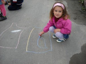 Valahogy még sosem sikerült olyan igazi boldoggyereknapot megélnünk… Tegnap az oviból ragyogva jött haza apró kis ajándékokkal és elmesélte, hogy volt aszfaltrajzolás, ugróverseny és hogy milyen jó volt. Aztán délután szerettünk volna elmenni a nagy, zsibongós, koncertes-vattacukros gyereknapra de nagyon-nagyon hideg lett és zuhogott az eső. Ma délelőtt a Művelődési Házban volt egy kicsi, rövid gyereknapozás rajzolással, mesefilmmel, arcfestéssel. És én újra megtanultam, hogy mennyire érzékeny ez a néha nagyhangú, nagyon önálló kicsilány. Legalább félóra kellett, amíg annyira felengedett, hogy leüljön rajzolni, aztán amikor két percre eltűntem a hátától, hogy megnézzem a Kicsit, sírva fakadt, pedig szóltam… Végül nagy áttörés volt, hogy megengedte, hogy tündért fessenek az arcára, és végül jókedvvel jöttünk haza:)